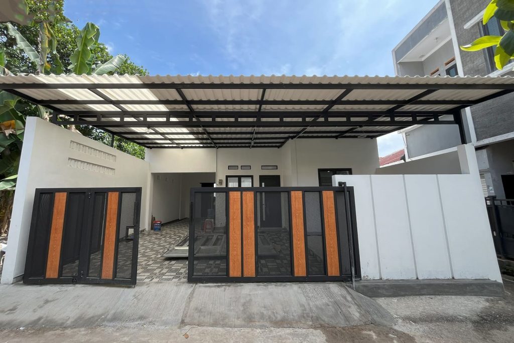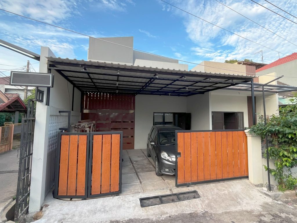 Proyek renovasi rumah dengan konsep minimalis, lantai yang ditingkatkan, penambahan ruang kamar, dan carport yang luas. Proyek ini berlokasi di Depok.